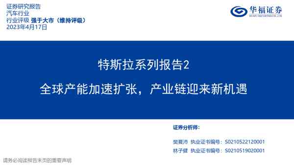 不久前,最新行业研究报告《汽车行业特斯拉系列报告2:全球产能加速扩张,产业链迎来新机遇林》全文正式在本站隆重发布,报告主要研究和分析了行业当前形势和发展,感兴趣的用户可以深入阅读,详细报告可下载阅读。
