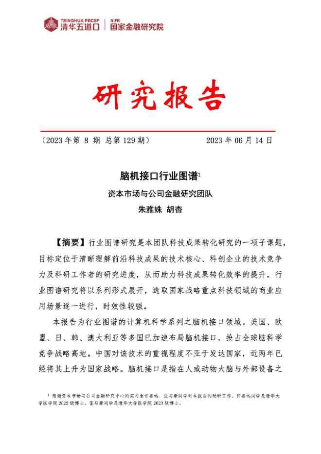 最新行业研究报告《清华五道口:脑机接口行业图谱行业报告》在本站发布了,作为本研究报告的首批读者,可以优先获得报告行业分析数据,快来围观吧,详细报告可下载阅读。