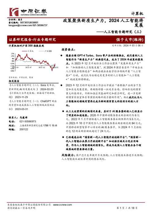 最近,国内知名研究机构在本站正式发布了《政策聚焦新质生产力,2024 人工智能》行业研究报告,报告分析了行业的最新情况,下面就带大家一起解读一下,详细报告可下载阅读。
