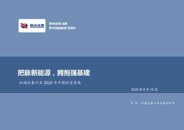 今天,《机械设备行业2020年中期投资策略:把脉新能源,拥抱强基建》行业研究报告在本站隆重登场,报告主要讲述了行业当前发展状况并提出了一系列的应对思路,其中很多观点值得我们深思,下面我们展示了报告的部分内容,详细报告可下载阅读。