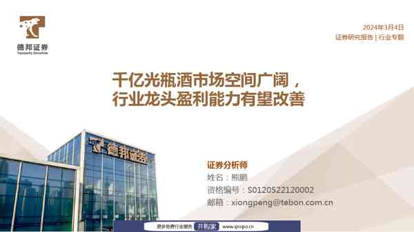 国内著名研究机构在本站发布了最新的《德邦证券光瓶酒行业专题报告:千亿光瓶酒市场空间广阔,行业龙头盈利能力有望改善》研究报告,报告对当前行业形势提出了新的观点和看法,请跟着我们一起解读报告内容吧,详细报告可下载阅读。