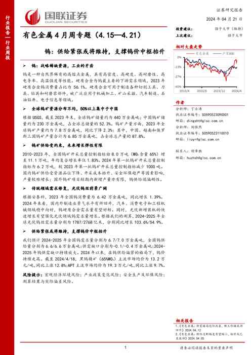 2010-2023年,全国钨矿开采总量控制指标由8.0万吨(WO3含量65%)增至11.1万吨,年均复合增长率仅1.83%。2024年第一批钨矿开采总量控制指标为6.2万吨,较2023年第一批钨矿开采总量控制指标减少1000吨。国内钨矿供给受资源品位下降、开采成本抬升、安全环保趋严等因素影响,产量较?
