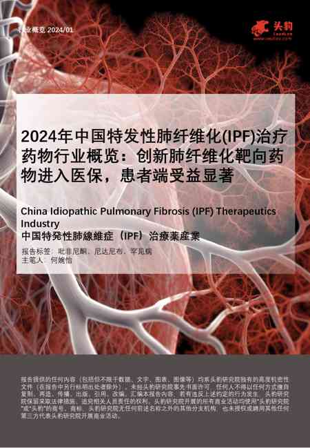 本文通过对IPF治疗药物行业的定义、应用领域、产业链、各细分领域市场状况进行分析,以期对未来市场方向提出研判。
