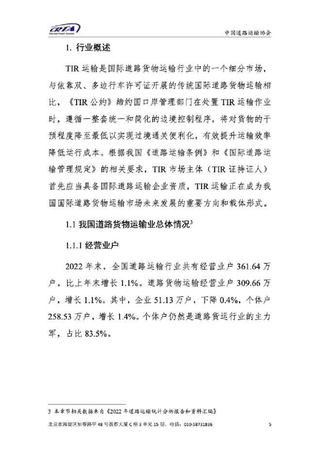 国内著名研究机构在本站发布了最新的《中国道路运输协会:2023中国TIR运输发展报告》研究报告,报告对当前行业形势提出了新的观点和看法,请跟着我们一起解读报告内容吧,详细报告可下载阅读。
