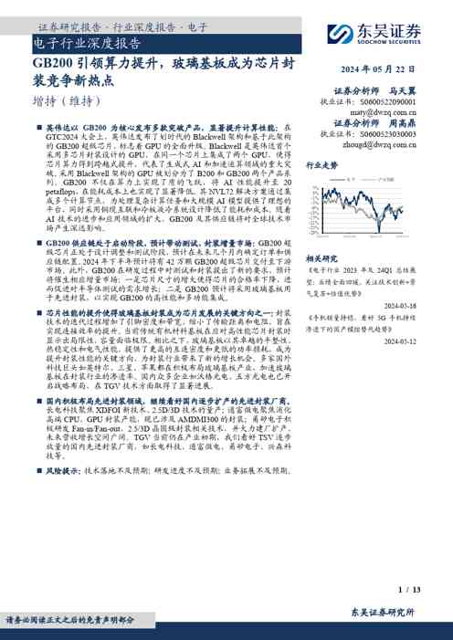 今天,《电子行业深度报告:GB200引领算力提升,玻璃基板成为芯片封装竞争新热点》行业研究报告在本站隆重登场,报告主要讲述了行业当前发展状况并提出了一系列的应对思路,其中很多观点值得我们深思,下面我们展示了报告的部分内容,详细报告可下载阅读。