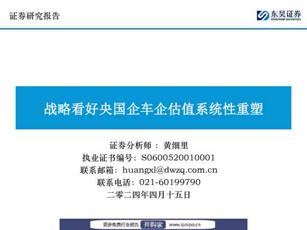国有企业是汽车工业中重要的市场主体,新一轮电动化产业创新变革下央国企车企市占率有所下滑。央国企车 企2023年销量为1673万辆,市占率为66%,与高峰时期市占率86%相比下滑约20pct。新能源市场中央国企车 企2023年市占率仅有32%。油车时代央国企合资品牌销量/盈利能力领先,合资品牌在行业新能源转型浪潮中步 伐较慢,央国企车企市占率/盈利能力随之下滑较快。2023年上汽/广汽/东风对联营和合营企业的投资收益之和 为203.9亿元,同比-46%;扣非后归母净利润之和为96.21亿元,同比-64%。 自上而下角度,国资委多次表态下央国企车企转型紧迫性/重要性提升:1)强调央企市值管理;2)对汽车央企 进行新能源汽车业务单独考核;3)对央企新能源转型提出更高要求。 梳理2024年央国企车企销量目标可知除一汽集团外目标同比增速均在9%以上。具体拆分目标销量,核心支撑 在于新能源(自主)&出口增长。 电动化:自主新能源转型/合资转型加速下央国企车企市占率向下空间有限。对央国企市占率乐观预期下2024年市占率有望见底,2026年市占率回升至60%;对央国企市占率中性预期下 2025年市占率有望见底,2026年回升至57.8%。 从目前的新能源渗透率及总量来看,上汽/长安/广汽三家央国企新能源总量/渗透率在央国企车企中排序靠前。 展望2024年后续规划,多数央国企车企均在积极布局独立品牌推动新能源渗透率提升。长安启源+深蓝+阿维塔 三品牌共振;上汽荣威-中低端+MG-海外+智己-中高端转型均有显著成效;广汽在电动化层面上布局较完善, 投资电池电驱等工厂,埃安向上突破+传祺XEV转型并行;东风23年下半年开始设立多个新能源品牌积极推动转 型等。 合资品牌市占率自新能源渗透率开始提升之后持续下滑。2024年2月合资品牌(不包含特斯拉)销量市占率为 35%,较2017年以来历史高峰相比下滑约32pct。从盈利能力而言,汽车行业规模效应极强,车企销量下滑随 之带来的盈利下滑非常迅速且极致。合资品牌转变思路:部分合资车企转变原先“决策、研发在外,生产、销 售在华”的传统合资模式,反向取经,与中方共同开发新能源车型,探讨合资合作新路径。