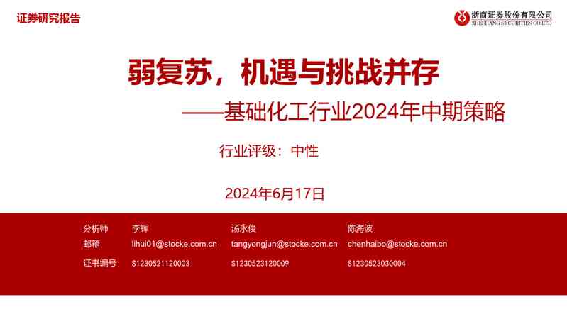 不久前,最新行业研究报告《基础化工行业2024年中期策略:弱复苏,机遇与挑战并存》全文正式在本站隆重发布,报告主要研究和分析了行业当前形势和发展,感兴趣的用户可以深入阅读,详细报告可下载阅读。