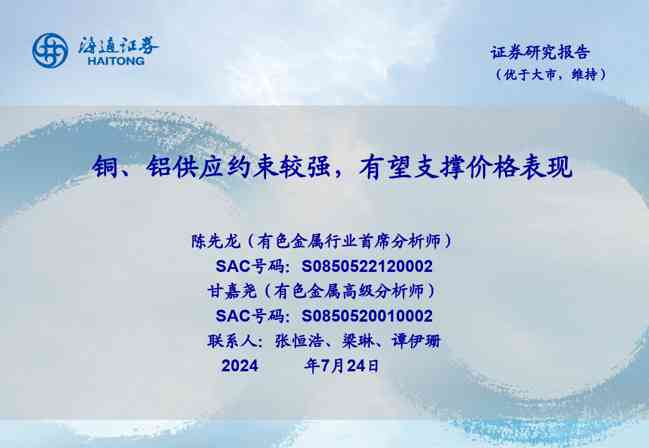 有色金属行业:铜、铝供应约束较强,有望支撑价格表现