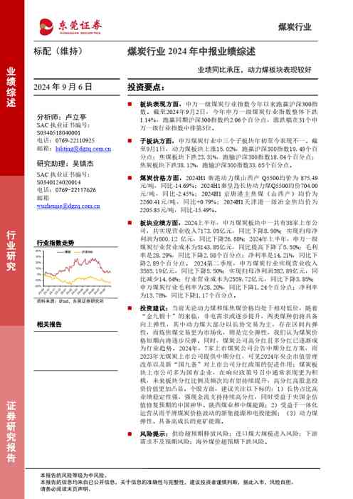 今天,《煤炭行业2024年中报业绩综述:业绩同比承压,动力煤板块表现较好》行业研究报告在本站隆重登场,报告主要讲述了行业当前发展状况并提出了一系列的应对思路,其中很多观点值得我们深思,下面我们展示了报告的部分内容,详细报告可下载阅读。