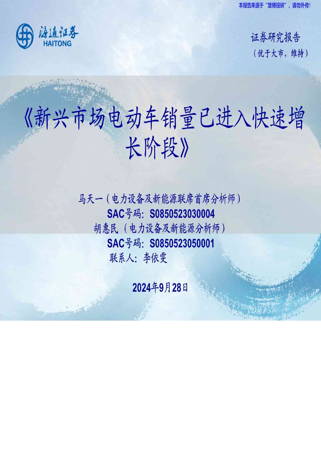 最近,国内知名研究机构在本站正式发布了《电力设备及新能源行业:新兴市场电动车销量已进入快速增长阶段》行业研究报告,报告分析了行业的最新情况,下面就带大家一起解读一下,详细报告可下载阅读。