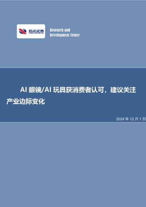 今天,《AI眼镜AI玩具获消费者认可,建议关注产业边际变化》行业研究报告在本站隆重登场,报告主要讲述了行业当前发展状况并提出了一系列的应对思路,其中很多观点值得我们深思,下面我们展示了报告的部分内容,详细报告可下载阅读。