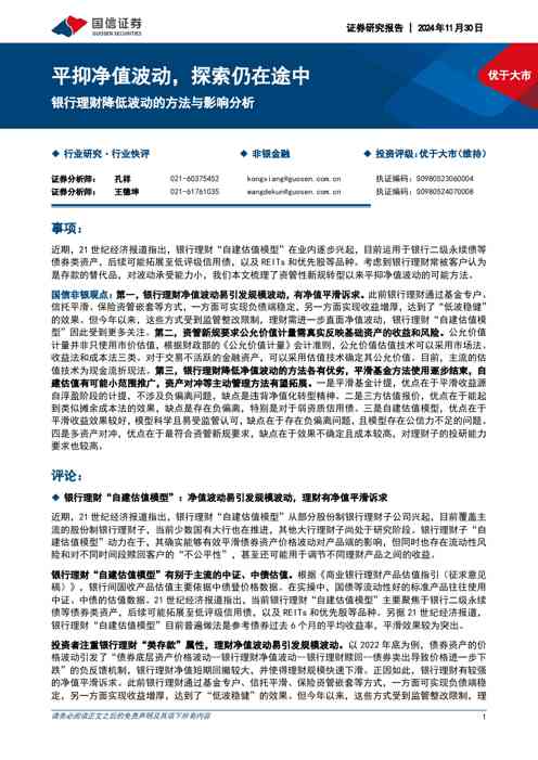 最新行业研究报告《银行理财降低波动的方法与影响分析:平抑净值波动,探索仍在途中》在本站发布了,作为本研究报告的首批读者,可以优先获得报告行业分析数据,快来围观吧,详细报告可下载阅读。