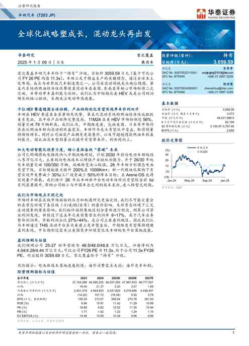 不久前,最新行业研究报告《汽车行业:丰田汽车(7203.JP),全球化战略塑成长,混动龙头再出发》全文正式在本站隆重发布,报告主要研究和分析了行业当前形势和发展,感兴趣的用户可以深入阅读,详细报告可下载阅读。