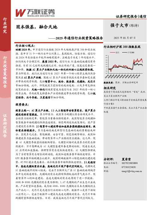 今天,《2025年通信行业投资策略报告:固本强基,融合天地》行业研究报告在本站隆重登场,报告主要讲述了行业当前发展状况并提出了一系列的应对思路,其中很多观点值得我们深思,下面我们展示了报告的部分内容,详细报告可下载阅读。