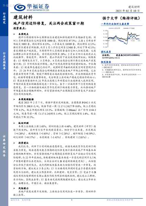近日,国内某著名研究机构的研究报告《建筑材料行业定期报告:地产信用边际修复,关注两会政策窗口期》新鲜出炉并成功在本站发布,报告中展示的数据和观点值得我们认真研读,在此我们摘录了报告的部分内容跟小伙伴分析,详细报告可下载阅读。
