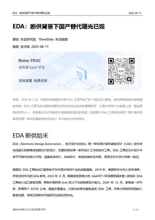 近日,国内某著名研究机构的研究报告《EDA:断供背景下国产替代曙光已现》新鲜出炉并成功在本站发布,报告中展示的数据和观点值得我们认真研读,在此我们摘录了报告的部分内容跟小伙伴分析,详细报告可下载阅读。