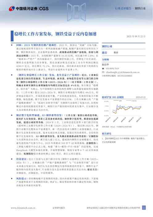 今天,《钢铁行业:稳增长工作方案发布,钢铁受益于反内卷加速》行业研究报告在本站隆重登场,报告主要讲述了行业当前发展状况并提出了一系列的应对思路,其中很多观点值得我们深思,下面我们展示了报告的部分内容,详细报告可下载阅读。